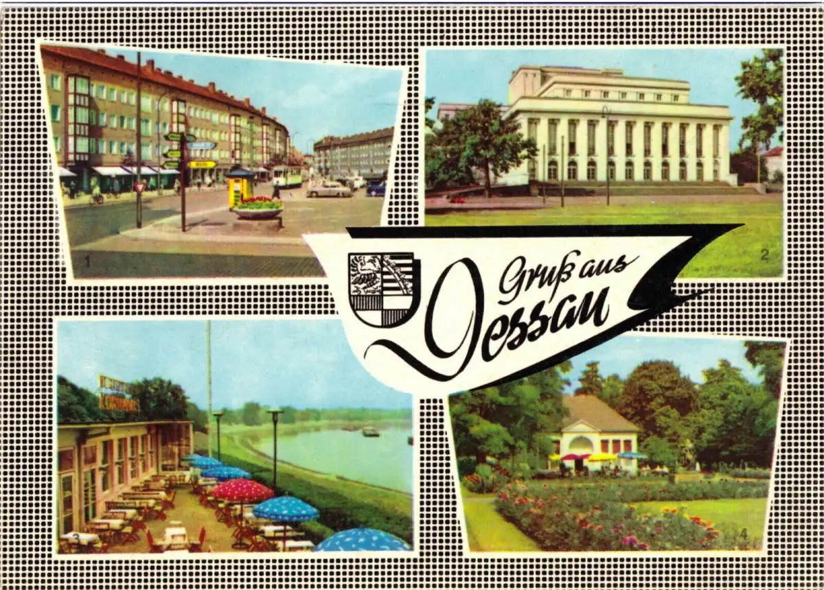 postalisch gelaufen, gestempelt: Dessau 2, 7.12.64