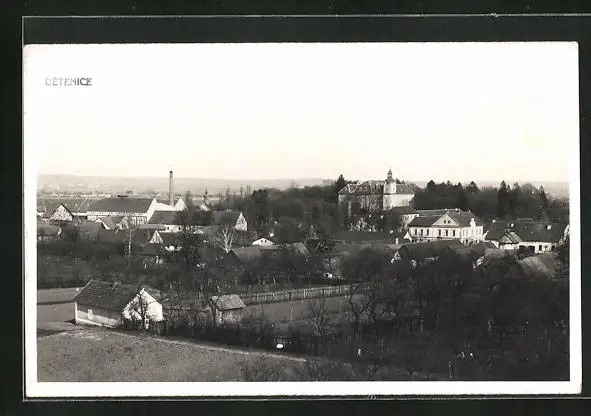 AK Detenice, Ortsansicht mit Schloss und Fabrik