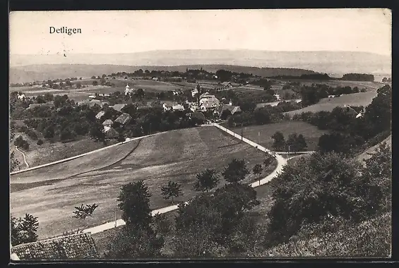 AK Detligen, Panoramablick von der Bergwiese aus