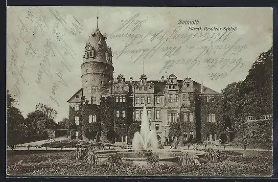 AK Detmold, Fürstl. Residenz Schloss mit Springbrunnen