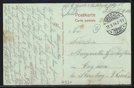 alte Ansichtskarte, gelaufen 1914, guter Zustand