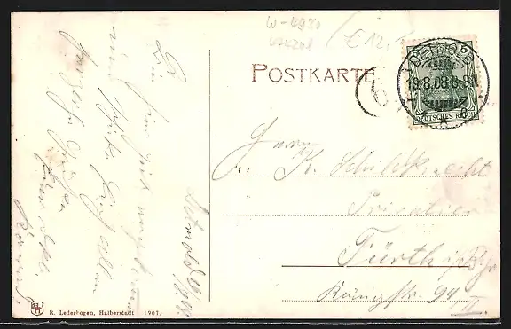 alte Ansichtskarte, gelaufen 1908, guter Zustand