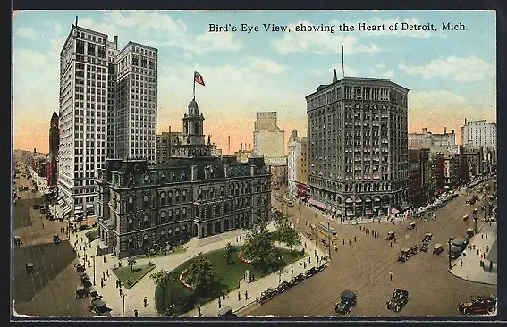 AK Detroit, MI, Bird`s Eye View, showing the Heart of the City
