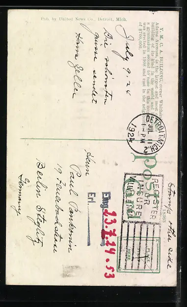 gelaufen 1924, Eckknick unten li., guter Zustand