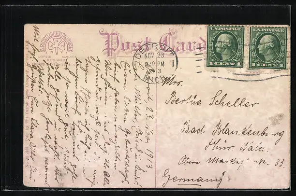 alte Ansichtskarte, gelaufen 1913, rückseitig Oberflächenschaden, guter Zustand