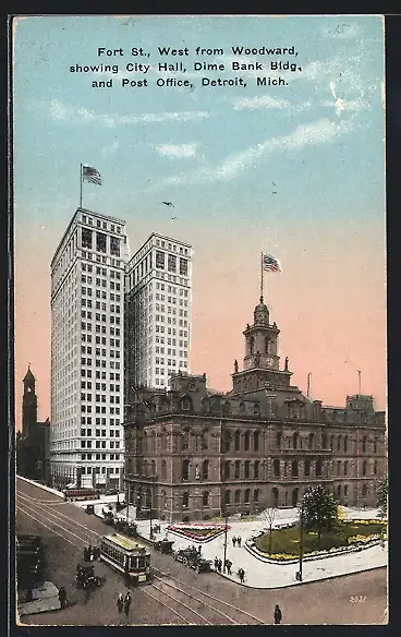 AK Detroit, Mich., Fort St. West from Woodward, Strassenbahn