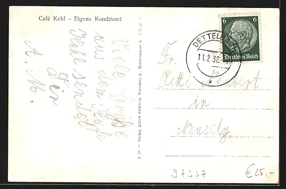 alte Ansichtskarte, gelaufen 1938, Stempelspur, guter Zustand