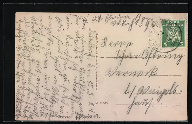 gelaufen 1924, Stecknadelloch oben mittig, guter Zustand