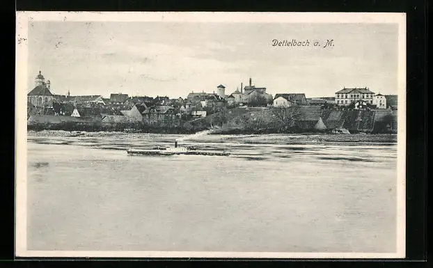 AK Dettelbach a. M., Panorama mit Dampfer