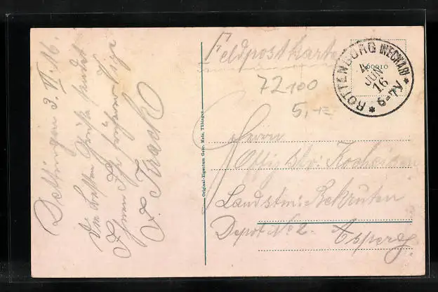 alte Ansichtskarte, gelaufen 1916 als Feldpost, Eckknick links unten, guter Zustand