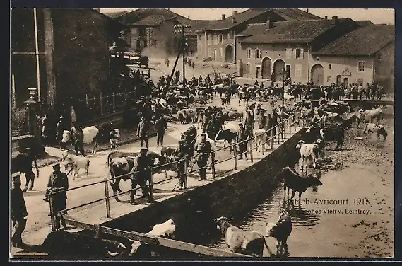 AK Deutsch-Avricourt, Soldaten treiben Vieh durch eine Strasse