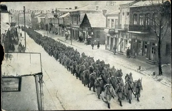 AK Deutsche Soldaten beim Marschieren, Kriegsschauplatz, I. WK