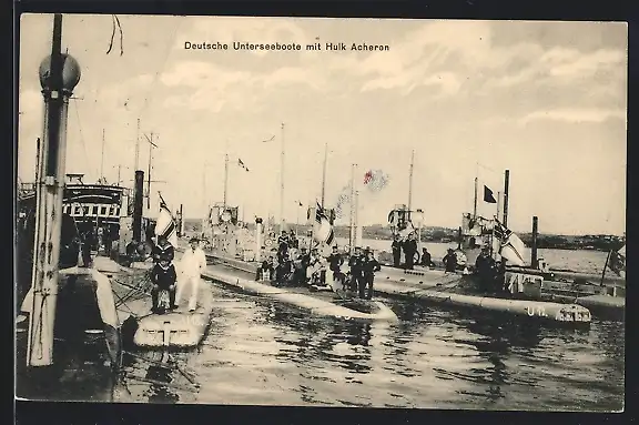 AK Deutsche Unterseeboote mit Hulk Acheren