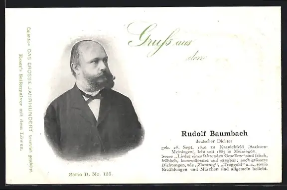 AK Deutscher Dichter Rudolf Baumbach im Portrait