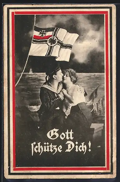 AK Deutscher Matrose mit seiner Liebsten unter der Reichskriegsflagge