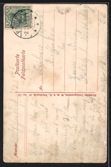 alte Ansichtskarte, gelaufen 1915, Eckknick re. unten, guter Zustand