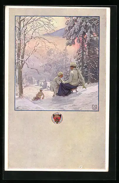 AK Deutscher Schulverein Nr. 261: Rodler auf ihren Schlitten