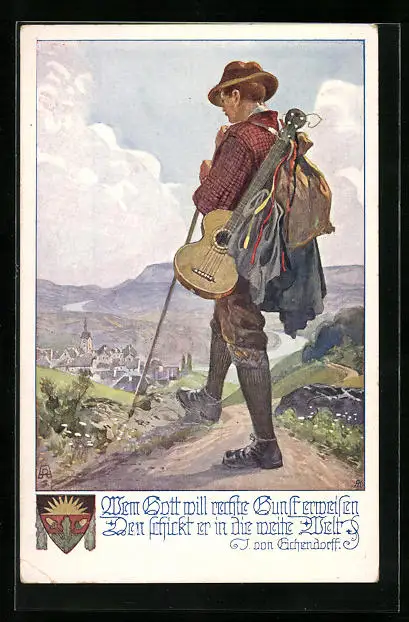 AK Deutscher Schulverein Nr. 878: Wanderer blickt hinab ins Tal