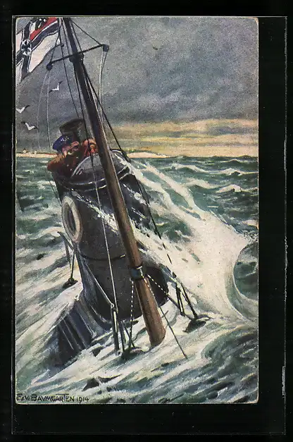 AK Deutsches U-Boot auf Patouillenfahrt an der engl. Küste