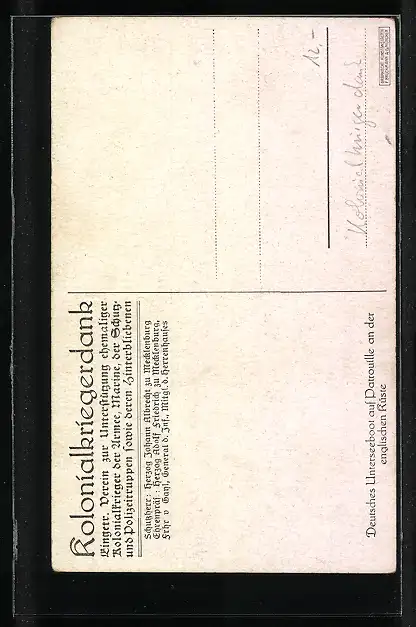 Personenbezogene Daten auf der Rückseite der Karte wurden durch blauen Textmarker unkenntlich gemacht. Die blauen Stellen sind auf die Vorderseite durchgeweicht und wirken sich negativ auf das Postkartenfoto aus