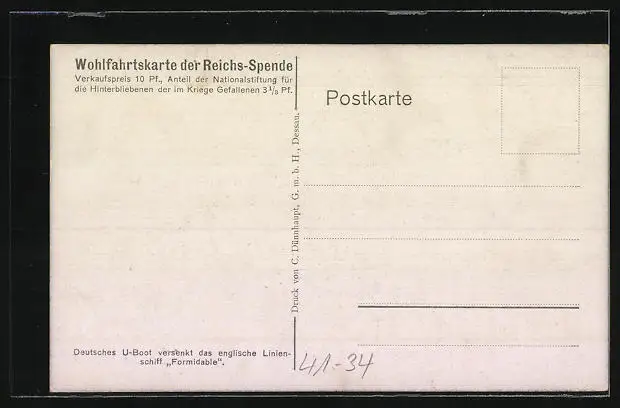 AK Deutsches U-Boot versenkt das englische Linienschiff Formidable