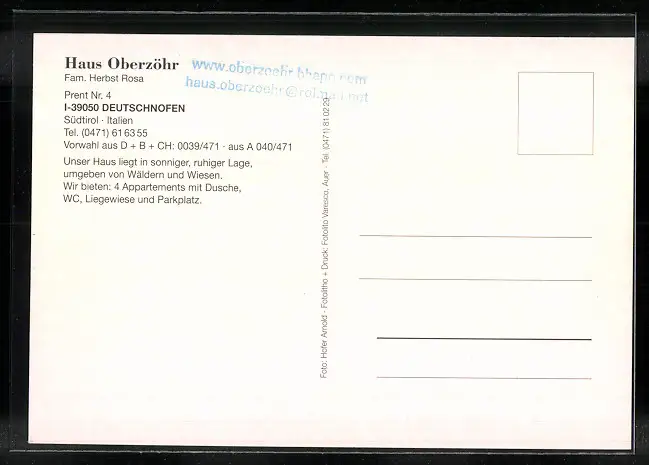 AK Deutschnofen, Hotel Haus Oberzöhr, Prent 4