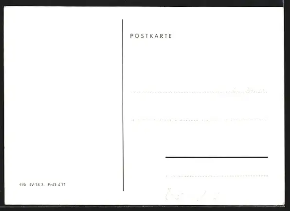 Personenbezogene Daten auf der Rückseite der Karte wurden durch blauen Textmarker unkenntlich gemacht. Die blauen Stellen sind auf die Vorderseite durchgeweicht und wirken sich negativ auf das Postkartenfoto aus