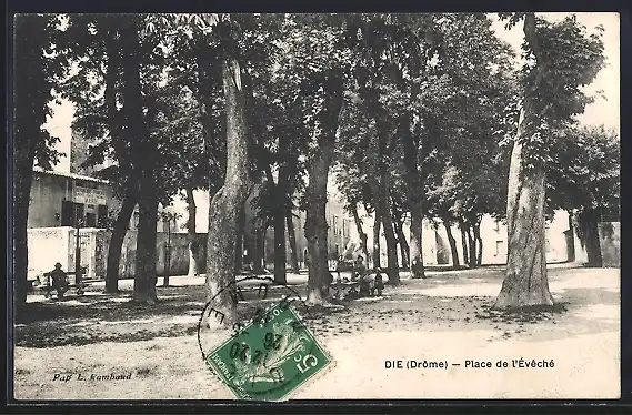 AK Die, Place de l`Évêché avec des arbres et des bancs