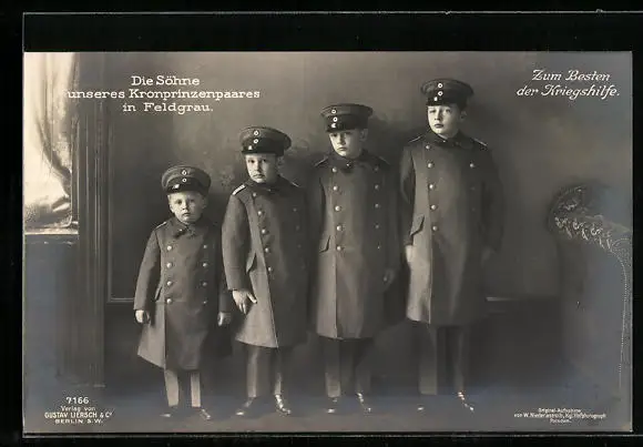 AK Die Söhne des Kronprinzenpaares Wilhelm von Preussen in Feldgrau