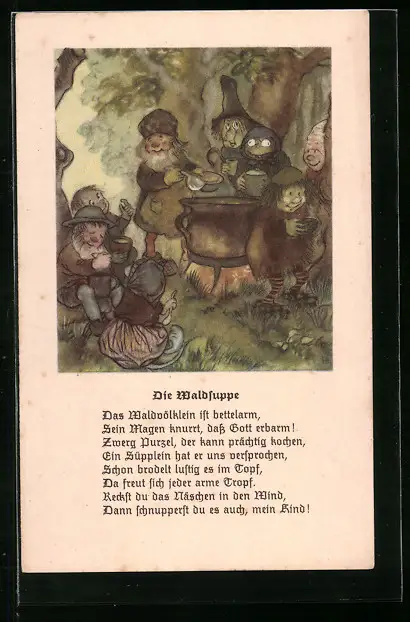 AK Die Waldsuppe, Zwerge im Wald