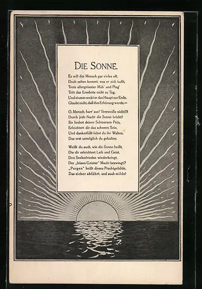 AK Die aufgehende Sonne übem Meer, Gedicht Die Sonne