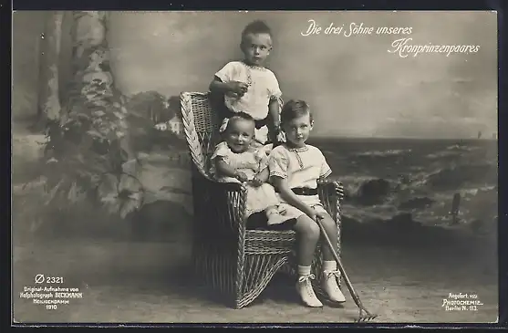 AK Die drei Söhne des Kronprinzenpaares im Korbstuhl