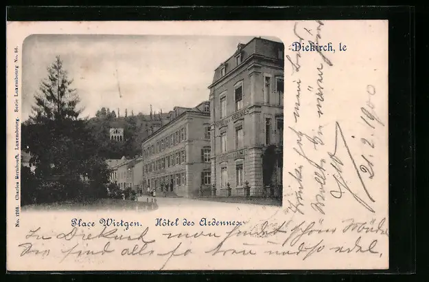 AK Diekirch, Place Wirtgen, Hotel des Ardennes