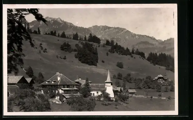 AK Diemtigen, Ortspartie mit Kirche und Bergen