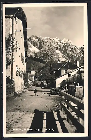 AK Dienten, Dorfstrasse mit Blick auf Hochkönig