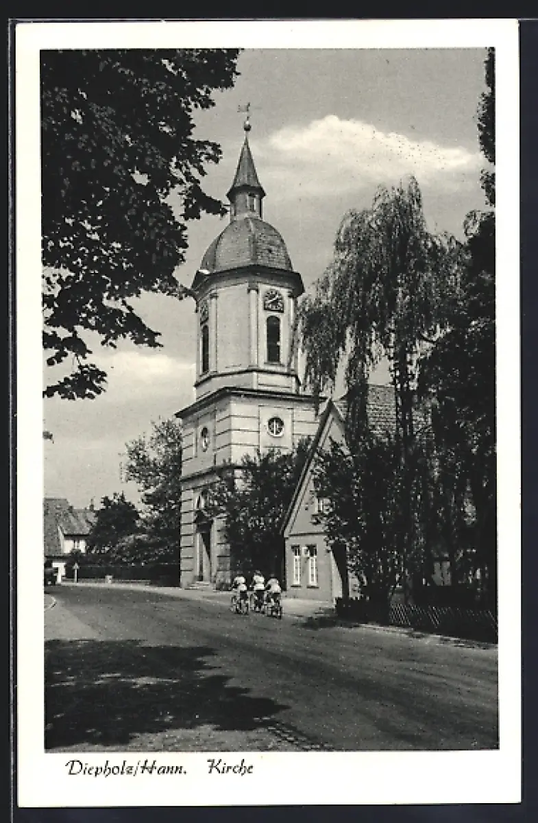AK Diepholz /Hann., Kirche mit Strassenpartie