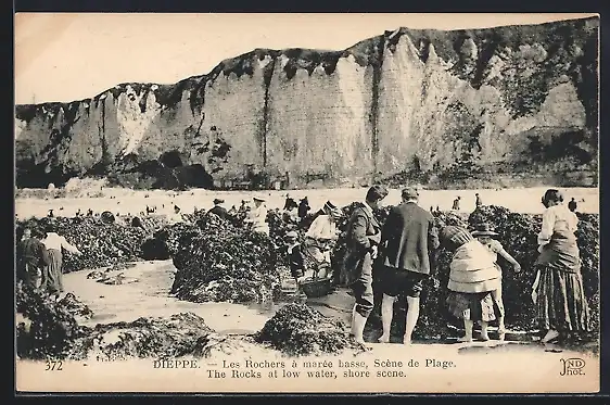 AK Dieppe, Les Rochers a Maree basse, Scene de Plage, Muschelsammler am Strand