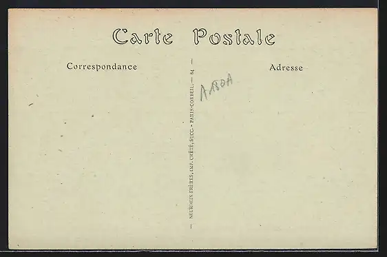 Personenbezogene Daten auf der Rückseite der Karte wurden durch blauen Textmarker unkenntlich gemacht. Die blauen Stellen sind auf die Vorderseite durchgeweicht und wirken sich negativ auf das Postkartenfoto aus