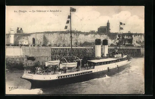 AK Dieppe, Passagierschiff Arundel in Fahrt
