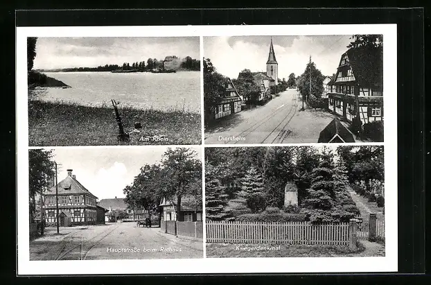 AK Diersheim, Strassenpartie mit Kirche, Am Rhein, Kriegerdenkmal