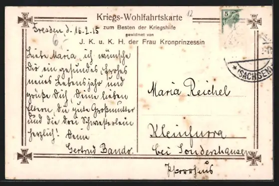 alte Ansichtskarte, gelaufen 1915, Briefmarke entfernt, guter Zustand