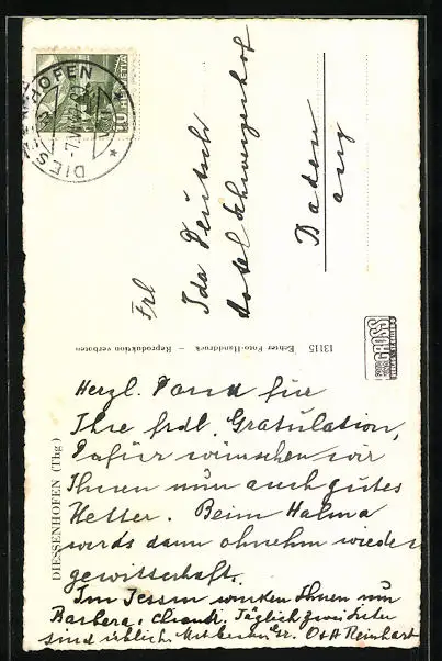 alte Ansichtskarte, gelaufen 1949, guter Zustand