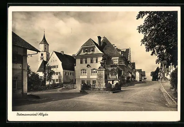 AK Dietmannsried /Allgäu, Strassenpartie mit Kirche