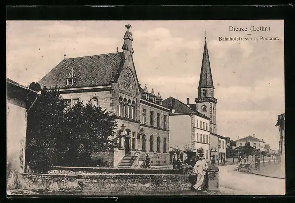 AK Dieuze i. Lothr., Bahnhofstrasse und Postamt