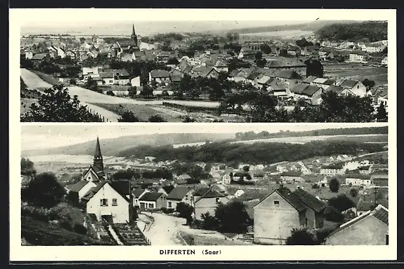 AK Differten /Saar, Ortsansichten aus der Vogelschau