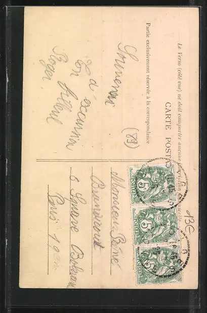 Personenbezogene Daten auf der Rückseite der Karte wurden durch blauen Textmarker unkenntlich gemacht. Die blauen Stellen sind auf die Vorderseite durchgeweicht und wirken sich negativ auf das Postkartenfoto aus