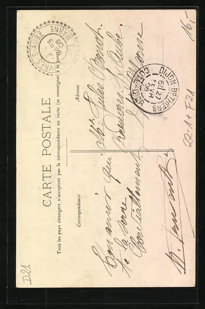 Personenbezogene Daten auf der Rückseite der Karte wurden durch blauen Textmarker unkenntlich gemacht. Die blauen Stellen sind auf die Vorderseite durchgeweicht und wirken sich negativ auf das Postkartenfoto aus
