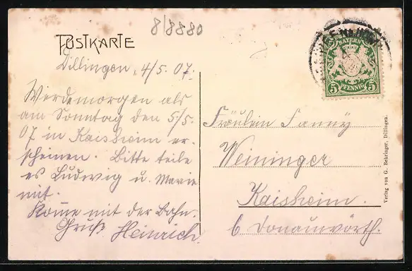 Weitere Ansichtskarten zur Postleitzahl 89407
