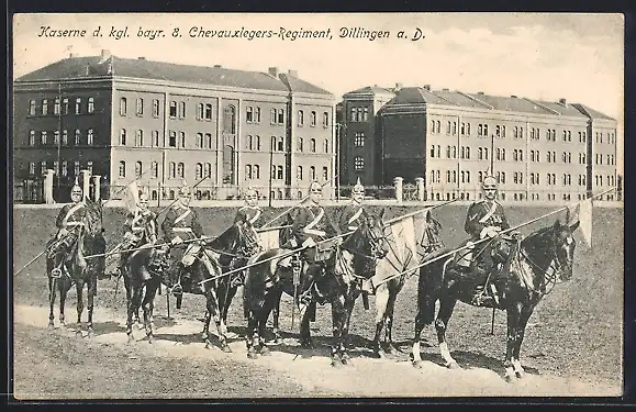 AK Dillingen a. D., Kaserne d. Kgl. bayr. 8. Chvauxlegers-Regiment, Ulanen zu Pferde