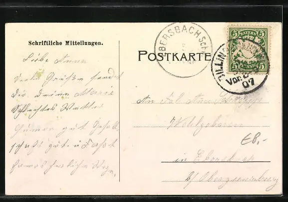 alte Ansichtskarte, gelaufen 1907, guter Zustand